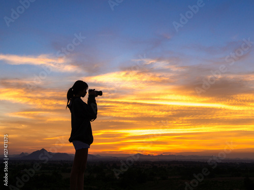 sunset, silhouette, beach, woman, sky, photographer, camera, roof, top