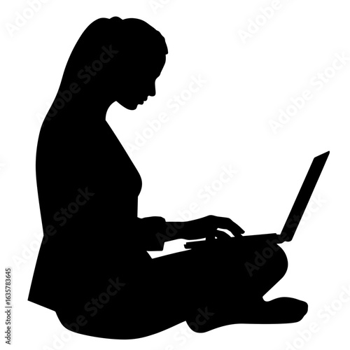 silhouette, woman, laptop, computer, female, black, figure, sitting, typing, white background, digital, graphic, outline, shape, shadow, dark, isolated, illustration, person, user, computing, portable, notebook, cyberspace, business, technology, communication, connectivity, connection, network, online, occupation, professional, workspace, education, learning, study, student, businesswoman, workplace, activity, lifestyle, design, copy space, cut-out, advertising