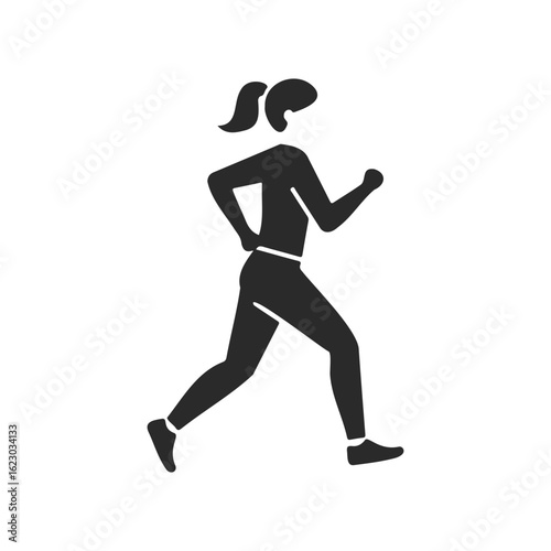 silhouette, female, jogger, running, profile, athletic, exercise, physical exercise, fitness, jogging, active, movement, sport, health, black, icon, symbol, graphic, simple, minimal, outdoors, leisure, lifestyle, runner