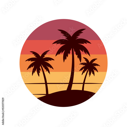 Silhouette Palm Trees Sunset Vector Logo Icon in a Circle