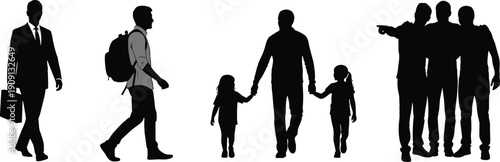 silhouette, people, walking, standing, business, family, casual attire, vector, design, lifestyle, teamwork, illustration, stock, art, bundle, businessman, holding hands, office worker