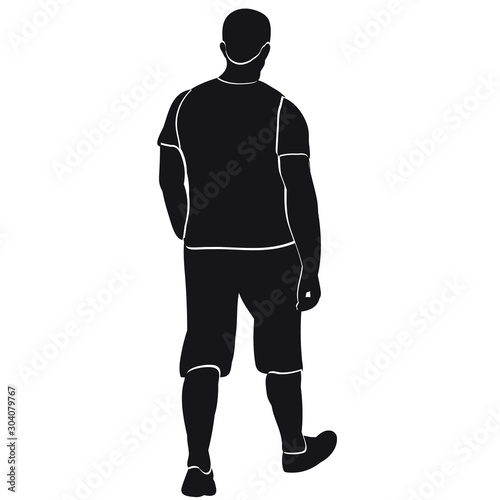 silhouette, businessman, business, isolated, people, suit, standing, black, back, white, person, young, fashion, woman, illustration, men at work, man, portrait, full-length, executive, 1, backview, full, body, casual attire