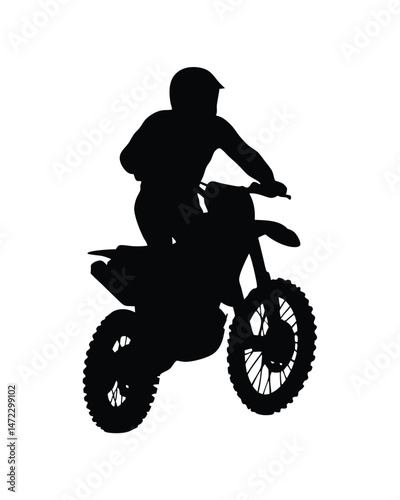 Silhouette vector of a person riding a dirt bike with helmet and protective gear on a white background