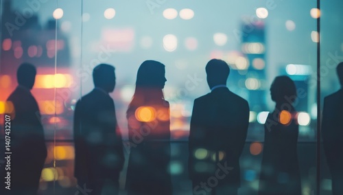 business, people, city, night, silhouette, window, view, urban, skyline, light, building, office, corporate, meeting, discussion, team, work, professional, colleague, glasses, modern, contemporary, evening, scene, downtown, employee, group, futuristic, success, ambition, strategy, collaboration, opportunity, development, future, progress, innovation, landscape, metropolis