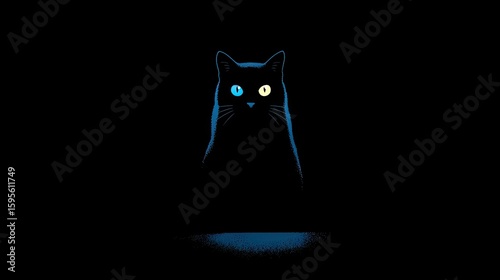 silhouette, dark, yellow, contrast, graphic, form, drawing, image, blue, shape, cat, style, aglow, nightlight, eye, minimal, still, minimalist, simple, animal, black, illustration, cute, design, colours, modern, abstract, light, night, art, still life