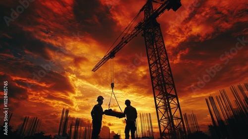 construction, men at work, crane, sunset, silhouette, building, industry, teamwork, labor, site, equipment, safety, architecture, skyline, urban, project, landscape, engineering, tool, material, hard hat, sky, cloud, dusk, progress, structure, development, labourer, concrete, framework, horizon, city, machinery, lifting, environment, industrial, effort, collaboration, productivity, construction site, work, man