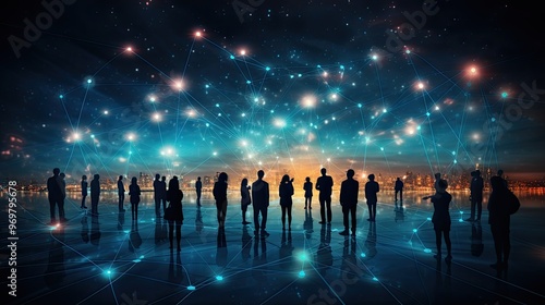 network, social, connectivity, global, communication, silhouetted, figure, connected, glowing, line, dark, blue, background, concept, man, woman, adult, background, people, togetherness, night, science, business, shiny, working, technology, futuristic, datum, abstract, businessman, modern, design, success, teamwork, motion, computer, silhouette, idea, connection, communication, person, concept, cooperation, standing, crowd, walking