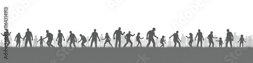 silhouette, people, community, interaction, grass, landscape, family, oneness, togetherness, diversity, harmony, outdoors, group, shadow, social, variety, children, adult, connection, illustration, abstract, nature, culture, relationship, teamwork, friendship, celebration, emotion, activity, dynamic, lifestyle, walking, playing, engagement, love, support, fellowship, together, illustrative, artistic, monochrome, modern, design, vector, symbolic