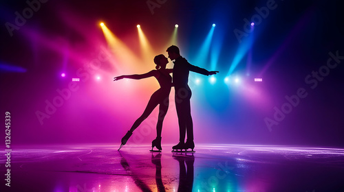 silhouette, ice, sk8, duet, colourful, performance, light, male, female, dance, artistic, figure, shadow, elegance, sport, glide, rink, display, skill, grace, entertainment, couple, synchronized, bright, dynamic, athletic, motion, spotlight, balance, harmony