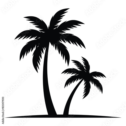 palm, tree, silhouette, tropical, beach, island, vacation, summer, nature, plant, icon, vector, graphic, design, illustration, black, and, white, minimalist, simple, isolated, background, exotic, paradise, coast, ocean, sway, frond, trunk, 2, pair, shadow, outline, clip, art, drawing, symbol, travel, holiday, zen, relaxation, warm, sunny, clear, sky, landscape, botanical, foliage