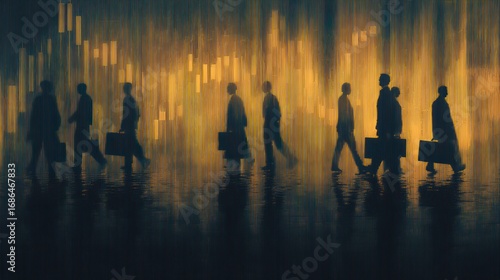 silhouette, people, walking, briefcase, business, blurred, gold, light, abstract, motion, crowd, dark, man, suit, finance, economy, career, professional, corporate, movement, background, pattern, texture, gradient, yellow, orange, black, anonymous, businessman, businesswoman, teamwork, leadership, success, strategy, investment