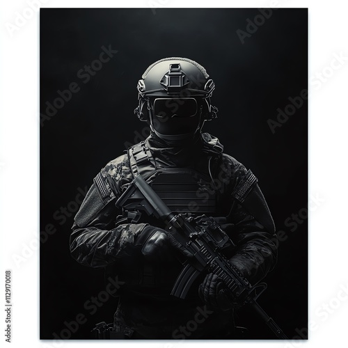 soldier, military, army, armed forces, combat, weapon, rifle, gun, tactical, gear, helmet, camouflage, uniform, black, dark, shadow, silhouette, mysterious, security, defense, protection, warrior, fighting, special forces, swat, police, law enforcement, night, darkness