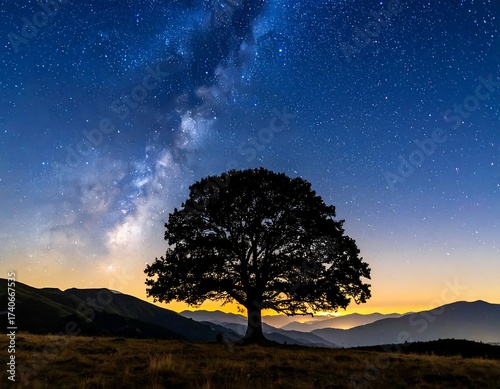 night, sky, star, lactic, way, tree, silhouette, mountain, landscape, serene, huge, cosmos, astronomy, nature, sunset, sunrise, gold, horizon, dark, light, high-coloured, colours, photo, astrophotography, beauty, dramatic, imposing, solitary, evening, morning, calm, tranquil, majestic, spectacular, huge, wide, open, peaceful, freedom, adventure, exploration, awe, wonder, elevation, grass, field, shadow, contour, shape
