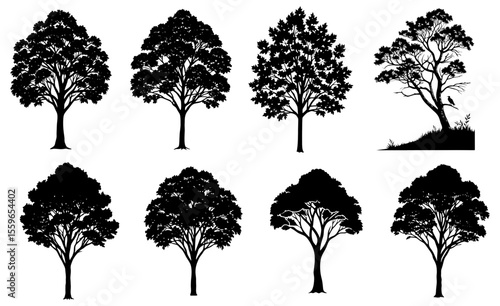 tree, silhouette, nature, plant, leaf, tree branch, forest, landscape, black, white, isolated, vector, illustration, design, element, graphic, symbol, icon, art, drawing, outline, shape, pattern, background, decorative, seasonal, environment, botanical, flora, wood, trunk, foliage, park, garden, natural, organic, eco, growth, autumn, spring, summer, winter, bird, collection, silhouetted