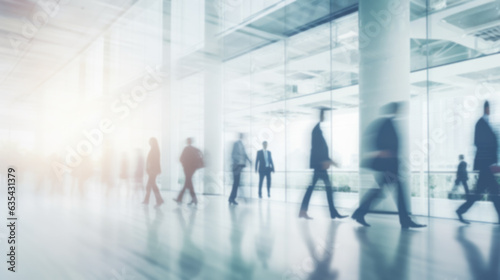 Silhouettes of business people communicating and walking over in white glass office background modern cityscape background. Business lifestyle, Toned image double exposure, blurred