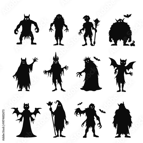 silhouettes of devil set