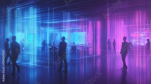 futuristic, neon, light, space, future, technology, digital, virtual, cyber, network, connection, communication, innovation, progress, abstract, design, glow, bright, colourful, modern, architecture, interior, people, crowd, business, meeting, conference, event, concept, graphic, illustration, art, background, wallpaper, three-dimensional, rendering