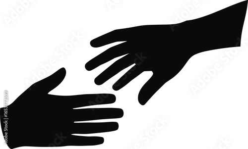 Silhouettes of two hands reaching toward each other, connection concept, help and support symbol, human interaction illustration, unity and relationship design