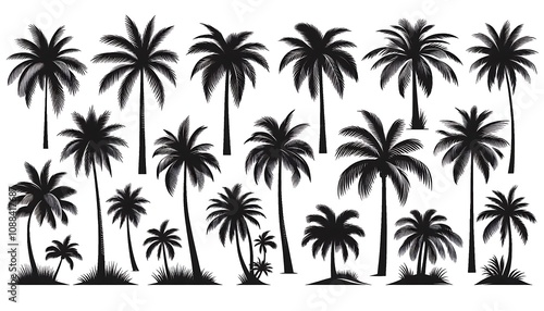 Silhouettes of Various Palm Trees on a White Background. generator AI