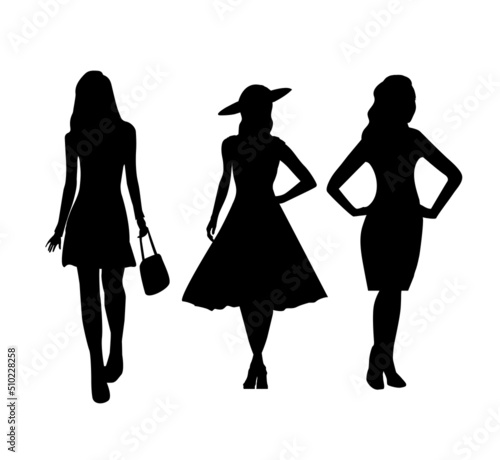 silhouette, fashion, woman, people, dress, vector, illustration, beauty, shopping, model, person, style, girl, hair, silhouette, clothes, lady, design, black, children, pose, clothing