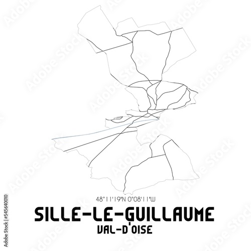 SILLE-LE-GUILLAUME Val-d'Oise. Minimalistic street map with black and white lines.
