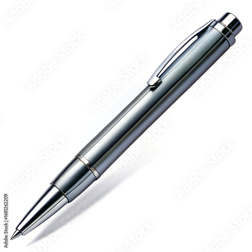 pen, writing, stationery, office, business, document, paper, ink, ball pen, silver, metal, chrome, sleek, elegant, classic, design, tool, equipment, accessory, corporate, professional, isolated, object, studio shot, executive, premium