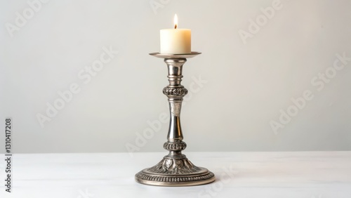 Silver Candle Holder with Candle on White Background