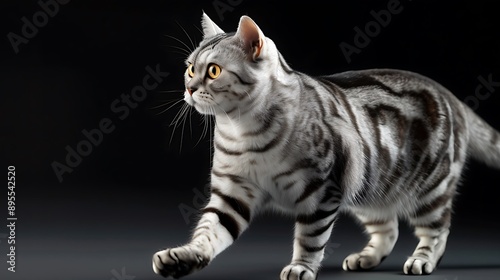 Silver Classic Tabby American Shorthair Cat on Black Background