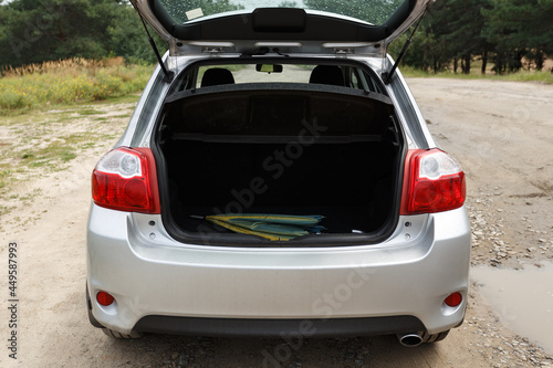 car, trunk, open, design, journey, modern, roomy, roomy, transportation, comfortable, stop, drive, clean, travel, road, vehicle, rear, back, park, concept, hatchback, transport, umbrella, trip, space, auto, automobile, forest, automotive, silver