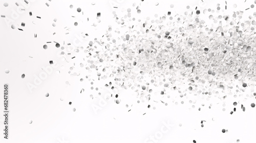 Silver Confetti Foil showering in the sky, groups of Party glitter becoming airborne on an isolated white background.