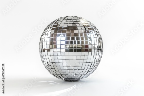 Silver disco mirror ball isolated on white background
