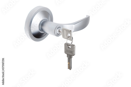 silver door lock on white background