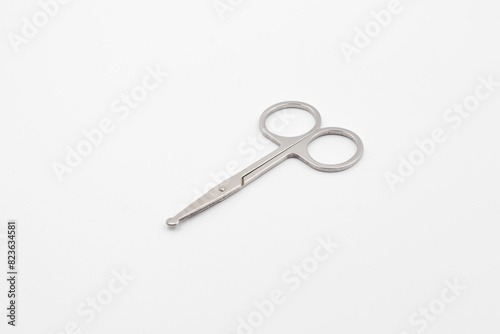 Silver metal scissors on a white background, Scissors for sewing on white background, Very sharp retro professional tailor scissors
