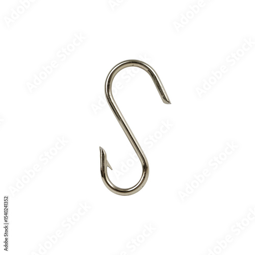 Silver Metal S-Hook, Industrial Style, Hanging Hardware, Isolated on Transparent Background