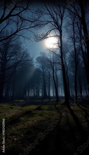 mystical, aethereal, magical, mystery, serene, dreamy, moonlight, quiet, wood, peaceful, atmosphere, tranquil, deep, silver, shadow, calm, full moon, ambience, stillness, silent, tree, night, timberland, night scene, arboreal, dark, nature, landscape, forest, night photography