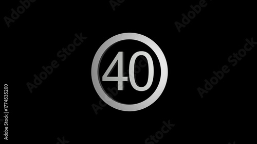 Silver Number 40 Inside a Circular Frame on a Black Background forty numeral