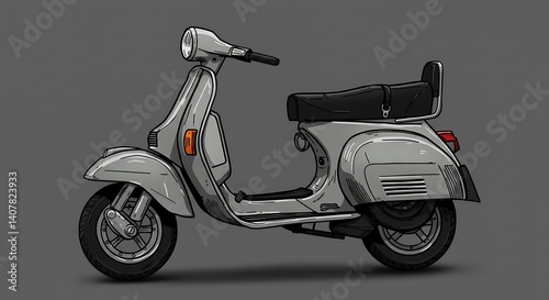 Silver Scooter Sketch: Classic Lines, Nostalgic Charm AI Generated