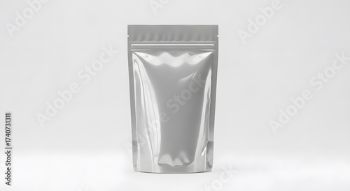 pouch, silver, empty, cardboard box, bag, food, supplement, modern, minimalist, container, foil, flexible, recyclable, storage, retail, product, commercial, display, industrial, clean, simple, smooth, reflective, shiny, metallic, neutral, light, bright, minimal, professional, studio shot, white background, beauty, health, organic, premium, generic, industry, marketing, advertisement