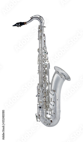 Silver Tenor Saxophone, Woodwind Music Instrument Isolated on White background