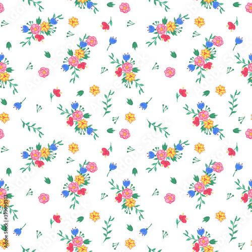Simple floral seamless pattern, painting with colorful watercolor. Baby series.