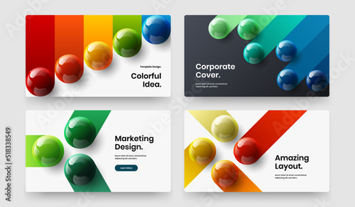 Simple 3D balls catalog cover illustration bundle. Clean corporate identity design vector template composition.
