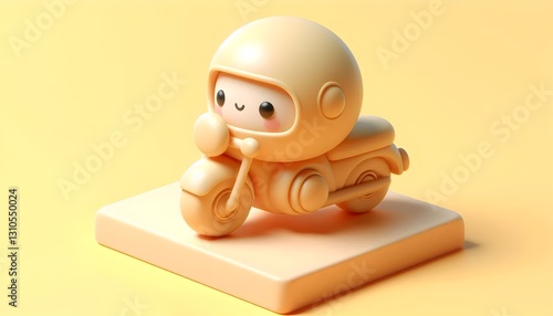 Simple 3D motorcycle with soft pastel yellow background and glossy rounded frame in playful charming design