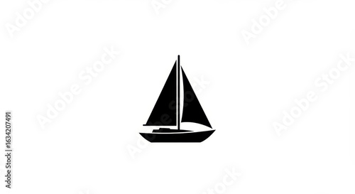 Simple and modern silhouette of a sailboat on a white backdrop offering a marine-themed visual
