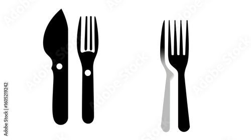 cutlery, knife, fork, black, grey, simple, design, illustration, graphic, eating, utensil, silhouette, dinner, meal, eatery, food, table, modern, minimalist, icon, vector, image, shape, style, flat, black-and-white, solid, contrast, object, isolated, outline, graphic design