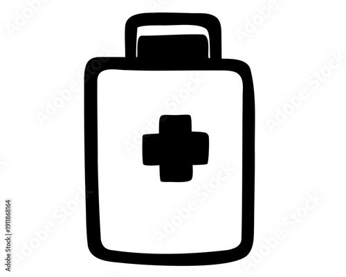 medicals, first aid, kit, container, health care, health, emergency, symbol, plus, hospital, medicine, safety, equipment, treatment, care, doctor, nurse, clinic, assistance, aid, box, help, medic, response, black, white, drawing, vector, illustration, graphic, icon, signs, first aid kit, doodle