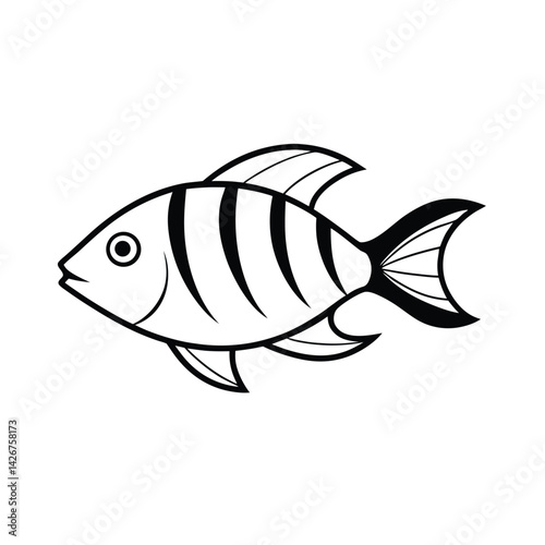 fish, outline, vector, illustration, black-and-white, drawing, sea, animal, aquatic, marin, graphic, cartoon, icon, symbol, isolated, education, simplicity, monochrome, art, design, underwater, clip art, ocean, striped, fin, tail, simple, line art, minimal