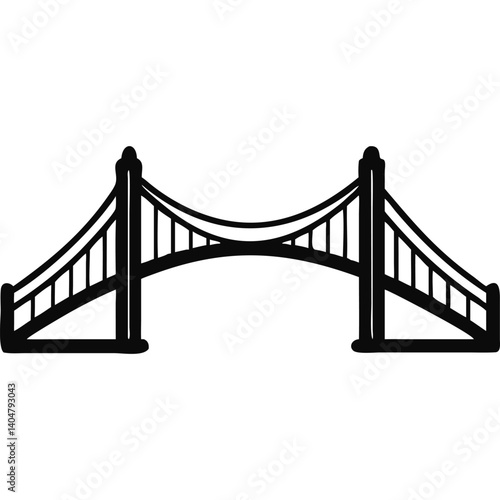 bridge, suspension bridge, icon, illustration, graphic, symbol, black-and-white, monochrome, simple, line art, drawing, vignetting, design element, vector, clip art, silhouette, infrastructure, architecture, transportation, travel, structure, crossing, road, path, engineering, construction, geometric, abstract, minimal, modern, linear, clean, bold, outline, shape, design, artwork