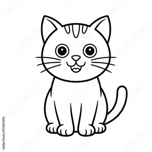 vector, illustration, scalable, icon, cat, kitten, animal, pet, cute, character, drawing, line, art, outline, simple, minimalist, black, and, white, monochrome, design, graphic, digital, clip art, cartoon, whisker, ear, tail, sitting, adorable, friendly, playful, logotype, sticker, colouring, page, template, adobe, illustrator, ai, web, print