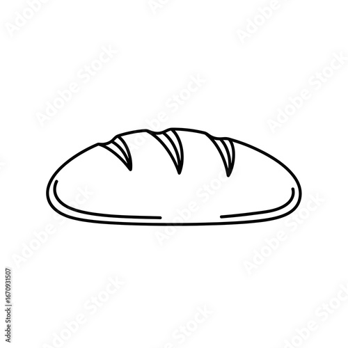bread, loaf, bakery, food, baked, grain, wheat, flour, crust, oven, cooking, meal, breakfast, lunch, dinner, snack, carbohydrate, nourishment, ingredient, staple, fresh, homemade, artisan, sourdough, baguette, ciabatta, rye, wheaten, white, brown, gold, crunchy, soft, texture, shape, oval, line, outline, design, illustration, simple, minimal, graphic, drawing, vignetting, art, style, isolated, background