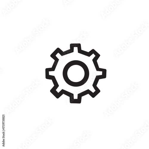 Simple Black Gear Icon on White Background